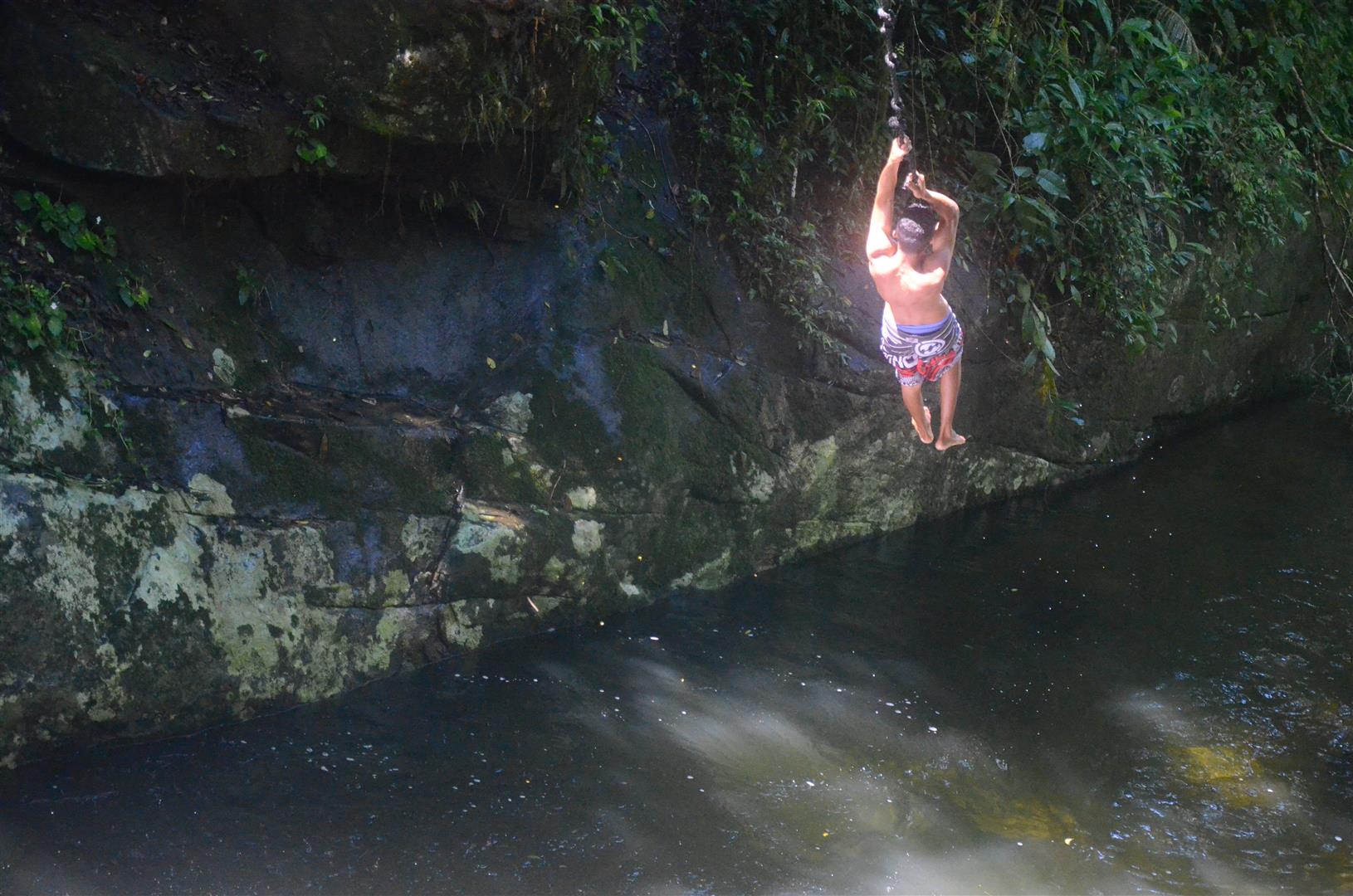 A trilha é pequena e quase plana, mas é preciso tomar cuidado pois pode ficar bem escorregadia. O rio passa ao lado da trilha, com um paredão de pedra de onde é possível pular direto no poço. Uma corda estrategicamente instalada permite balançar para pular mais no meio do poço. Mas é preciso muito cuidado, para pular somente em locais bem conhecidos. Nunca pule em um rio em locais desconhecidos, pois existe o risco de acidentes em pedras submersas.