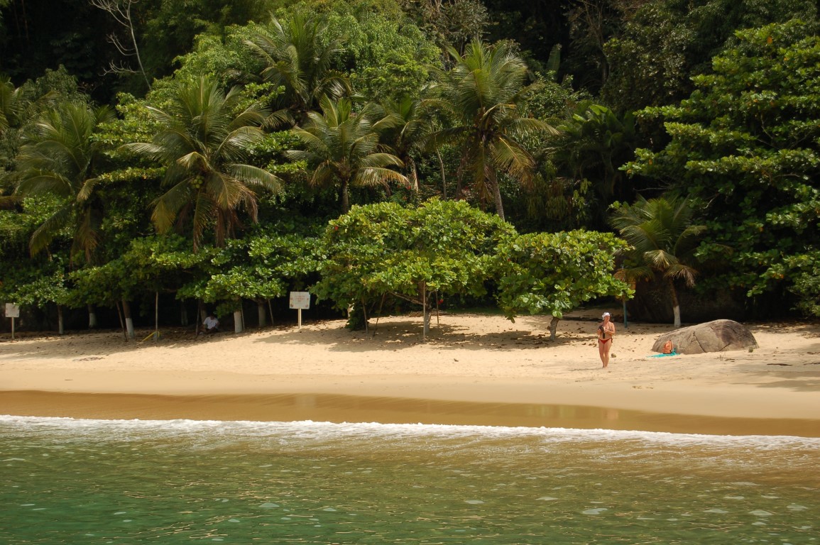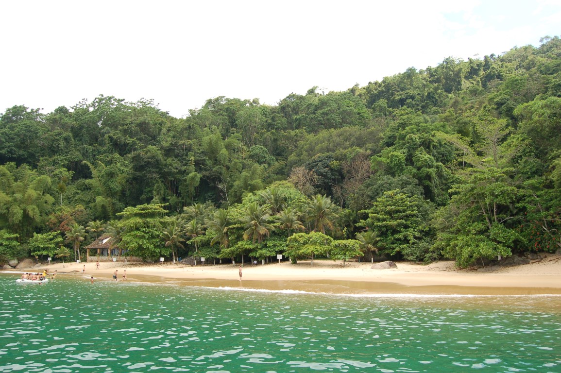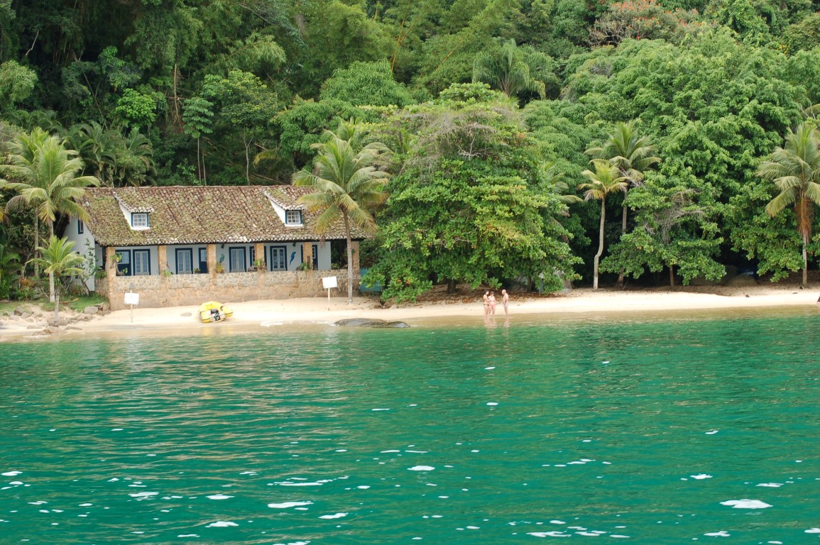 Em um dos cantos da praia há uma casa particular, mas a maior parte do tempo a praia fica deserta. Somente quando chega alguma escuna de turismo a praia ganha movimento.