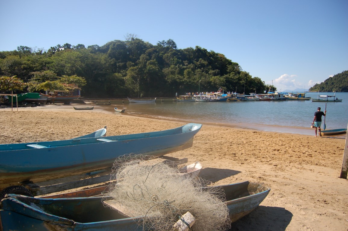 Há um pier de onde saem alguns barcos que levam turistas para ilhas próximas, principalmente para a Ilha do Araújo. Na baía ficam ancorados diversos barcos de pesca. A Praia é pequena com uma faixa de areia larga. No canto mais ao norte sai uma trilha (curta e fácil de percorrer) que leva à Prainha, bastante frequentada por turistas.